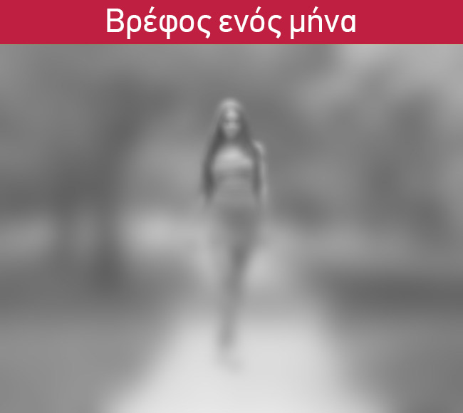 Ένα μήνα μετά τη γέννηση του, το βρέφος αρχίζει να βλέπει και να ξεχωρίζει εικόνες που βρίσκονται σε απόσταστη 20 εκατοστών απο αυτό. Για παράδειγμα, τη μητέρα του όταν θηλάζει.