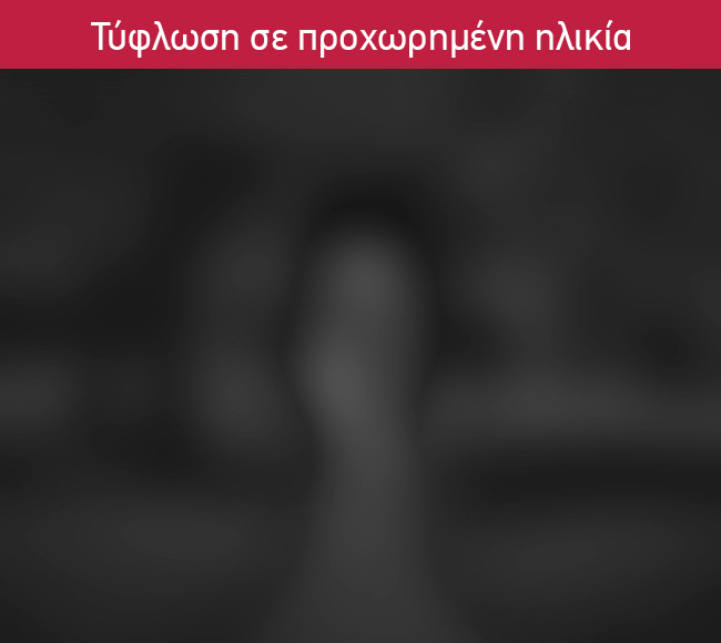Έτσι θα έβλεπε την εικόνα κάποιος που ενώ γεννήθηκε βλέποντας κανονικά, μεγαλώνοντας έχασε την όραση του. Έχει μερική αντίληψη του φωτός και μπορεί να ξεχωρίσει το φώς από το σκοτάδι.