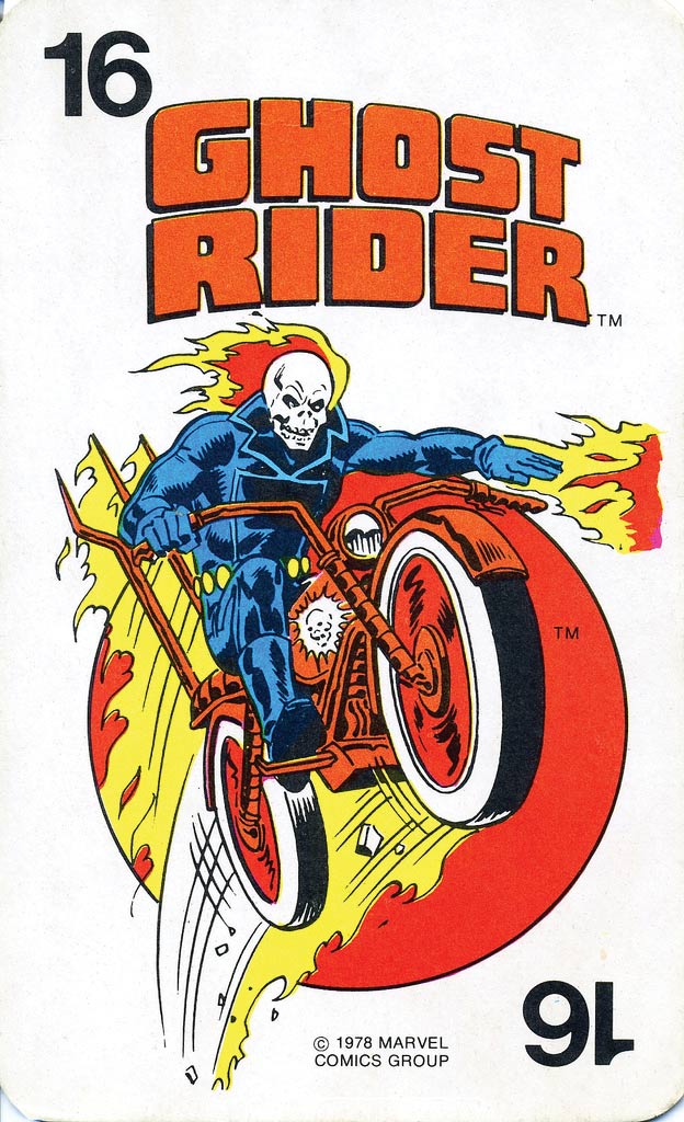 Ακόμη ένας σχετικά γνωστός “υπερήρωας” ο Ghost Rider, γνωστός στον χώρο του θεάματος και των θιάσων με το όνομα Jonathan “Johnny” Blaze. Αποτελεί νεότερο χαρακτήρα καθώς πρωτοεμφανίστηκε το 1972. Οι γονείς του ήταν μέλη ενός θιάσου και εκτελούσαν επικίνδυνα άλματα με μηχανές. Μυήθηκε από νωρίς στον κόσμο του θεάματος και οι ευτυχείς στιγμές τελείωσαν νωρίς καθώς η μητέρα του μαζί με τα δύο μικρότερα αδέρφια του τον εγκατέλειψε μαζί με τον πατέρα του, φοβούμενη για την κατάρα που ακολουθούσε την οικογένεια. Λίγο καιρό μετά, ο πατέρας του Johnny πεθαίνει στην προσπάθεια ενός ριψοκίνδυνου άλματος και την επιμέλεια του νεαρού παιδιού αναλαμβάνει μιά άλλη οικογένεια η οποία του χαρίζει όσο πιό ανέμελα χρόνια γίνεται μακριά από την σκληρή πραγματικότητα, κάτι για το οποίο φροντίζει η συνομήλικη “αδερφή” του και αργότερα αγαπημένη του, Roxanne.