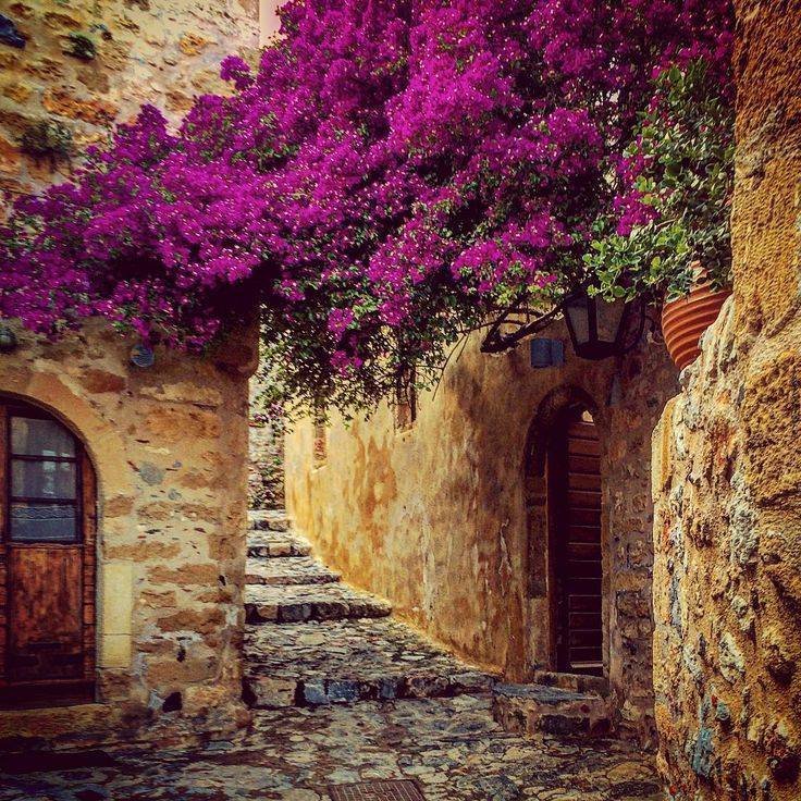 Σε μία από τις πλαγιές του βρίσκεται σφηνωμένη μια μεσαιωνική πολιτεία ζωσμένη από τείχη, επάλξεις και πύργους.. το περίφημο κάστρο της Μονεμβασιάς.