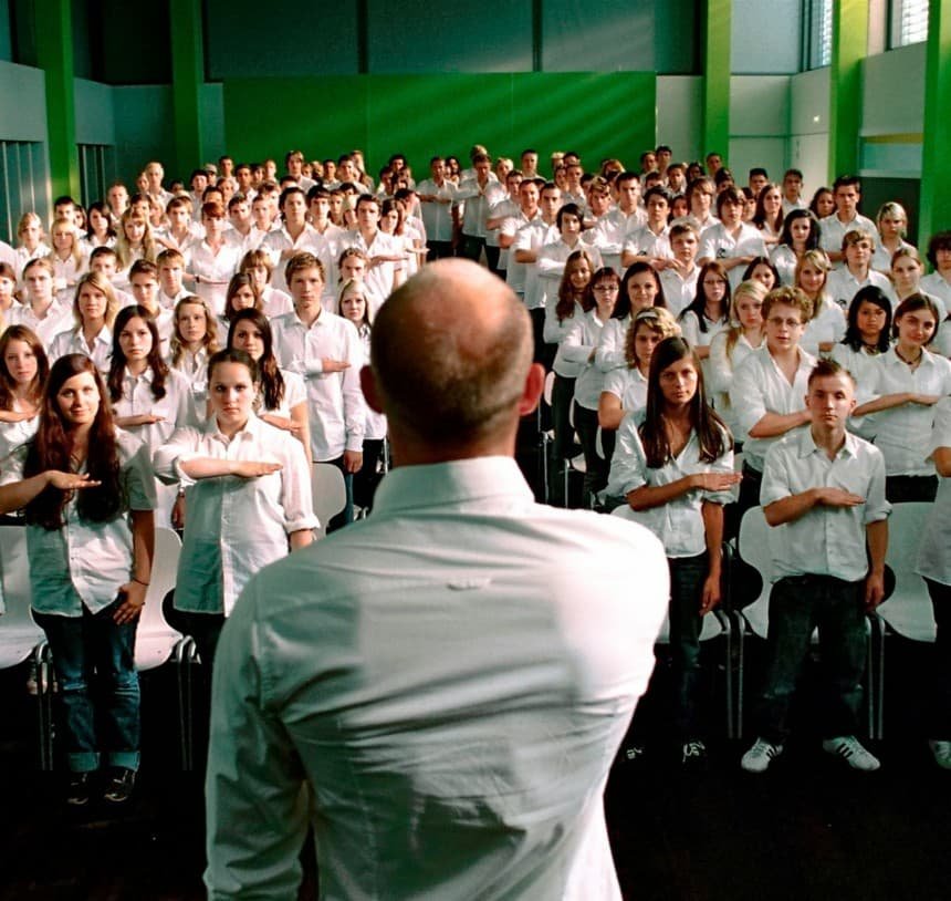 Τη μέρα της ανακοίνωσης του ονόματός αυτού του αρχηγού στο πλαίσιο μαθητικής συνέντευξης Τύπου, τα αποκαλυπτήρια εξελίχθηκαν σε φιάσκο. Ο δάσκαλος αντί να ανακοινώσει το όνομα τους έδειξε εικόνες του μέλλοντος τους που δεν ήταν παρά εικόνες από τη ναζιστική Γερμανία και τους εξήγησε ότι είχαν εμφανιστεί απολύτως πρόθυμοι να ανταλλάξουν την ελευθερία τους, με την ψευδαίσθηση ότι έγιναν μέλη μιας ελίτ…