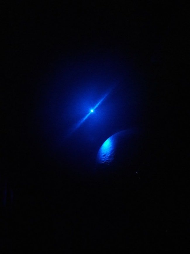 ..και εδώ το λαμπάκι ενός φορτιστή δίπλα σε μια καρέκλα γραφείου.