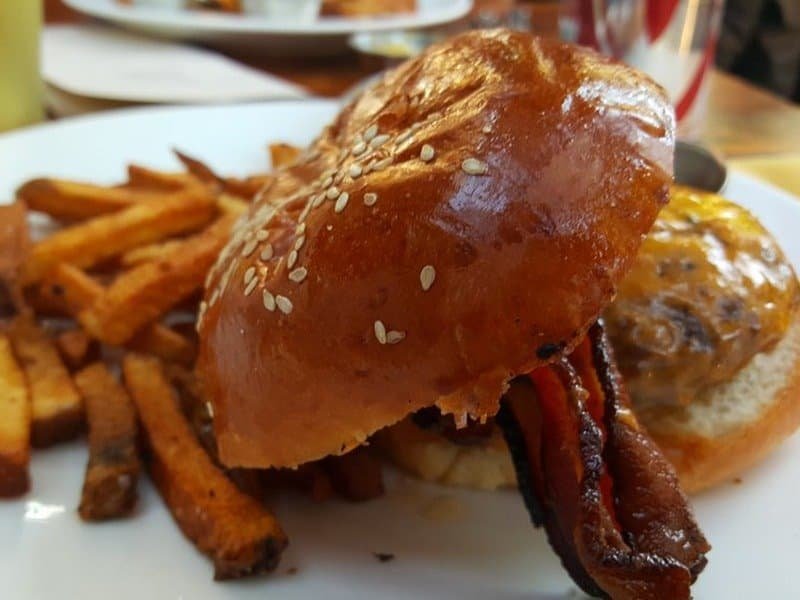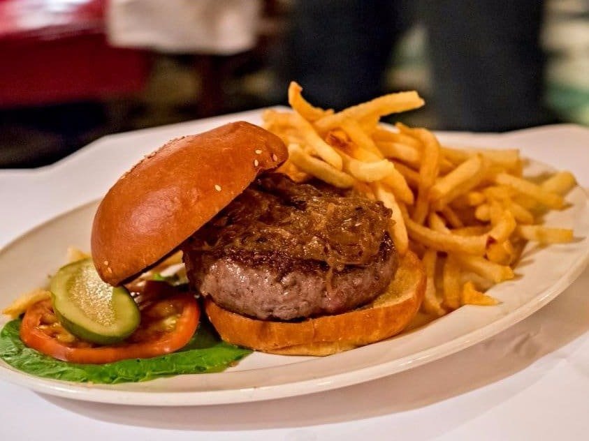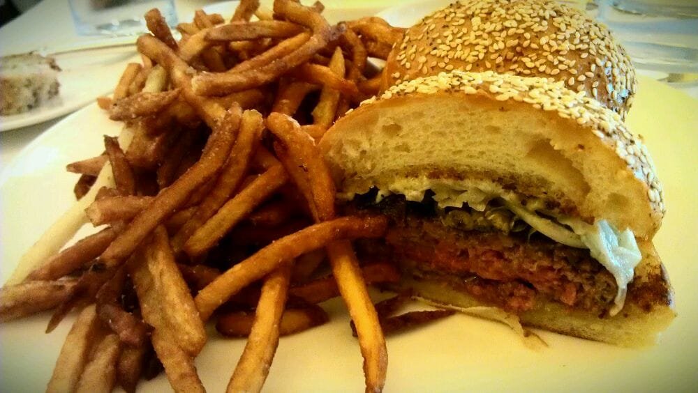 Ο σεφ Μπιλ Μπρασίλ δημιούργησε ένα burger από σιτεμένο κρέας με καραμελομένα κρεμμύδια, ντομάτα, αγγουράκι τουρσί και ελάχιστο μαρούλι. Συνοδεύεται από τραγανές τηγανιτές πατάτες. Η γεύση της απλότητας, σχολιάζουν οι θαμώνες.