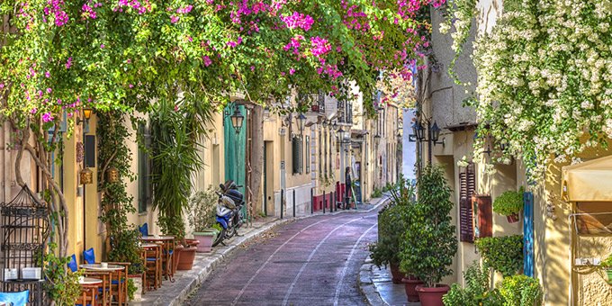 Αυτή η συγκλονιστικά φουντωτή (και συγκλονιστικά μωβ) μπουκαμβίλια που πρωταγωνιστεί στις φωτογραφίες της Πλάκας σε περιοδικά, ταξιδιωτικούς οδηγούς και τράπεζες φωτογραφιών, βρίσκεται στη γωνία των οδών Ερεχθέως και Λυσίου.