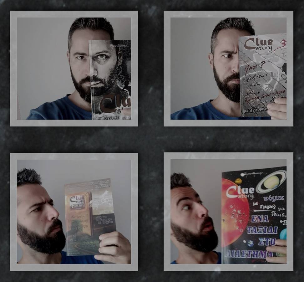 Η σειρά Clue Story αποτελείται από μια νουβέλα, δύο μυθιστορήματα και ένα κόμικ με γρίφους για παιδιά. Είναι ευδιάκριτη η αδυναμία μου στο Clue Story Κόμικ , όχι μόνο γιατί μεταδίδει έννοιες πολύτιμες για ένα παιδί της εποχής μας, αλλά και γιατί έγινα εγώ ο ίδιος παιδί κατά τη διάρκεια της συγγραφής και της εικονογράφησής του. Επέλεξα να το μετατρέψω σε εφαρμογή για να μπορέσει να φτάσει σε όσο το δυνατόν περισσότερα παιδικά μάτια και να ενεργοποιήσω τους γονείς να διδάξουν στα παιδιά τους την αποδοχή της διαφορετικότητας, την αντίσταση στο φόβο, τη δύναμη της φαντασίας, της συνεργασίας και της αγάπης.