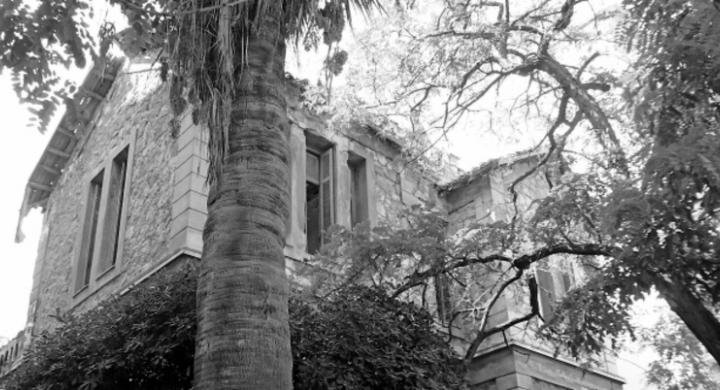 Μισογκρεμισμένο, με έναν πεθαμένο φοίνικα να δεσπόζει στην πρόσοψη και την αφρόντιστη βλάστησή του να οργιάζει, το άλλοτε πανέμορφο οίκημα αποτελεί ιδανικό σκηνικό για τη γέννηση τρομακτικών ιστοριών με φαντάσματα…