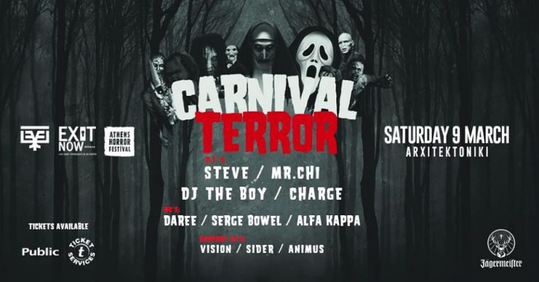 Στον πυρετό της Αποκριάς, ένα πάρτυ διαφορετικό από όλα τα άλλα έρχεται να ταράξει τα νερά! Ο λόγος για ένα πάρτυ τρόμου, που έλαβε χώρα στην Αρχιτεκτονική, στο Γκάζι, το Σάββατο 9 Μαρτίου με την υπογραφή της Level Up Athens, του Exit Now και του Θοδωρή Ελευθεριάδη, το οποίο δεν είναι άλλο από το Carnival Terror !