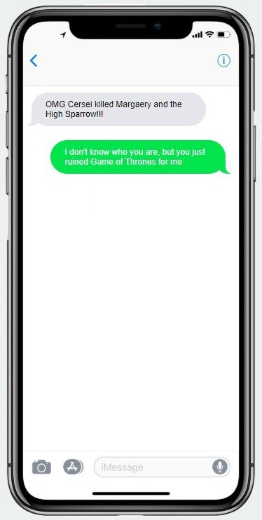 Υπάρχει κάποιος άνθρωπος που θέλετε να εκδικηθείτε και γνωρίζετε ότι είναι φαν του «Game of Thrones»; Με ένα δολάριο, μπορείτε να εξασφαλίσετε ότι τη στιγμή που ένα από τα νέα επεισόδια ολοκληρώσει την πρώτη προβολή του στις ΗΠΑ, θα καταφθάσει στο κινητό του ένα SMS γεμάτο spoilers.