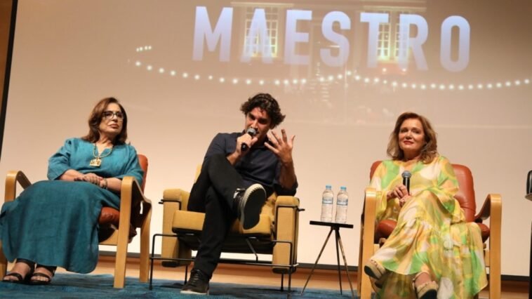 Οι παρευρισκόμενοι πήραν μία πρώτη γεύση από το πολυαναμενόμενο «Maestro», παρακολουθώντας ένα 15λεπτο απόσπασμα. Στη συνέχεια, ο Χριστόφορος Παπακαλιάτης και οι Χάρις Αλεξίου, Μαρία Καβογιάννη, Φάνης Μουρατίδης, Μαρίσσα Τριανταφυλλίδου, Αντίνοος Αλμπάνης, Στεφανία Γουλιώτη, Κλέλια Ανδριολάτου, Ορέστης Χαλκιάς, Γιώργος Μπένος, Δημήτρης Κίτσος δέχτηκαν ερωτήσεις, μοιράστηκαν στιγμές από τη δημιουργία της σειράς και άκουσαν τις πρώτες εντυπώσεις των παρευρισκόμενων.