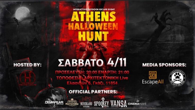 🎃Το ATHENS HALLOWEEN HUNT, το μεγαλύτερο escape room event, επιστρέφει για 5η φορά πιο επικό από ποτέ, μόνο που φέτος…παίζεται αλλιώς!
