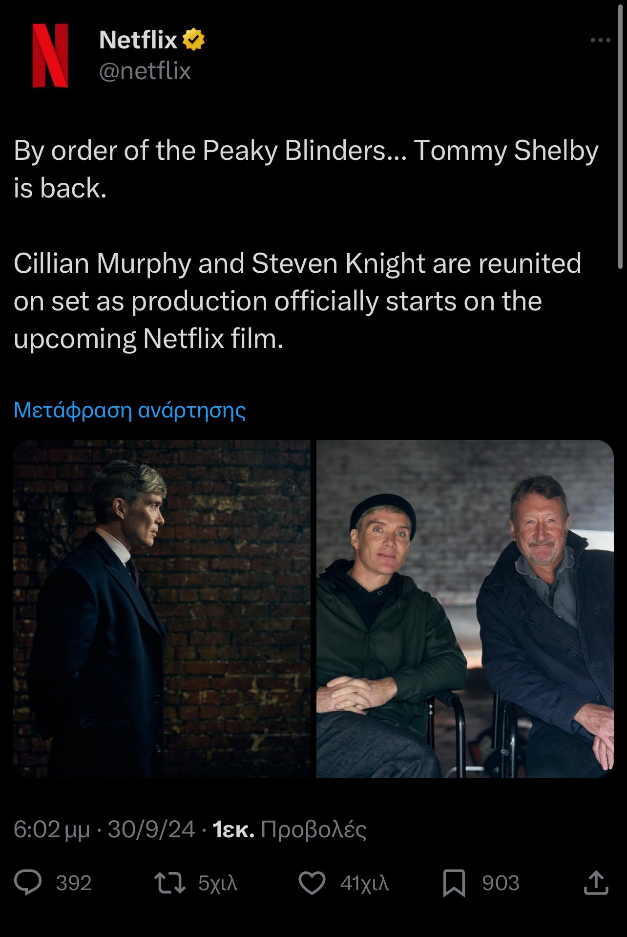 Ο Murphy επιστρέφει στον κόσμο του «Peaky Blinders» ως ένας νικητής των Όσκαρ, αφού πέρυσι κέρδισε το βραβείο καλύτερου ηθοποιού για την ερμηνεία του ως J. Robert Oppenheimer, πατέρας της ατομικής βόμβας, στο ιστορικό έπος του Christopher Nolan «Oppenheimer».