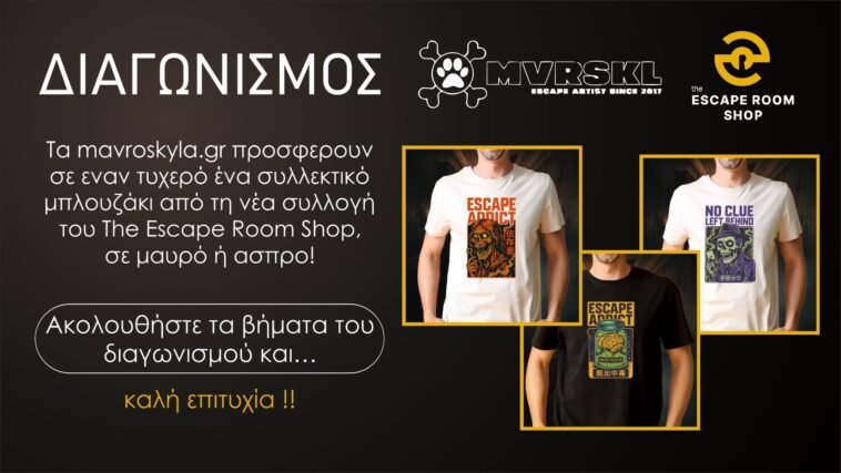 Το Escape Room Shop και ο Γιώργος Κωστάκης μας προσφέρει ένα συλλεκτικό μπλουζάκι από τη νέα συλλογή τους για έναν τυχερό νικητή της σελίδας !