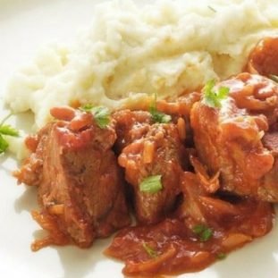 Πουρές με μοσχάρι κοκκινιστό -