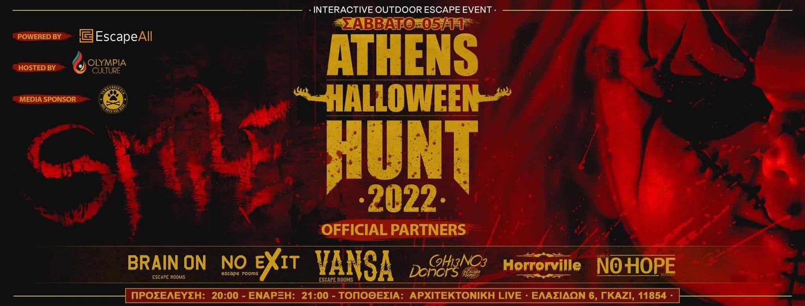 Athens Halloween Hunt που τα Μαυρόσκυλα είναι χορηγός επικοινωνίας.